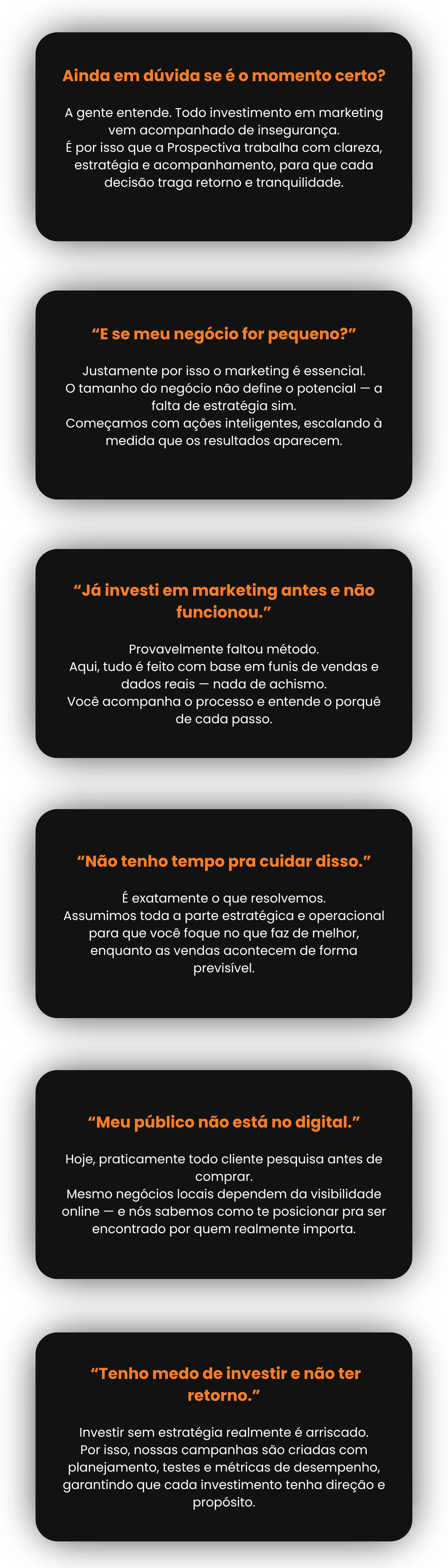 Por isso, trabalhamos com número reduzido de novos clientes por vez, garantindo atenção total em cada estratégia.